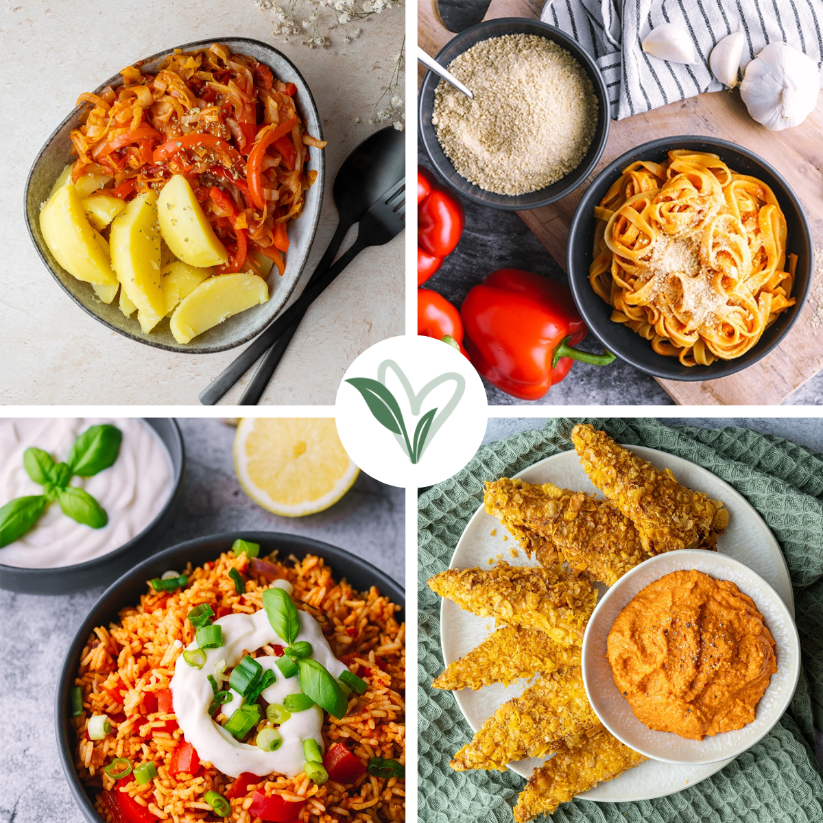 Vegane Paprika-Pasta: Schnell, einfach & lecker! Aus im Ofen gerösteter Paprika, Zwiebeln & Knoblauch entsteht eine fruchtig-leichte Soße.